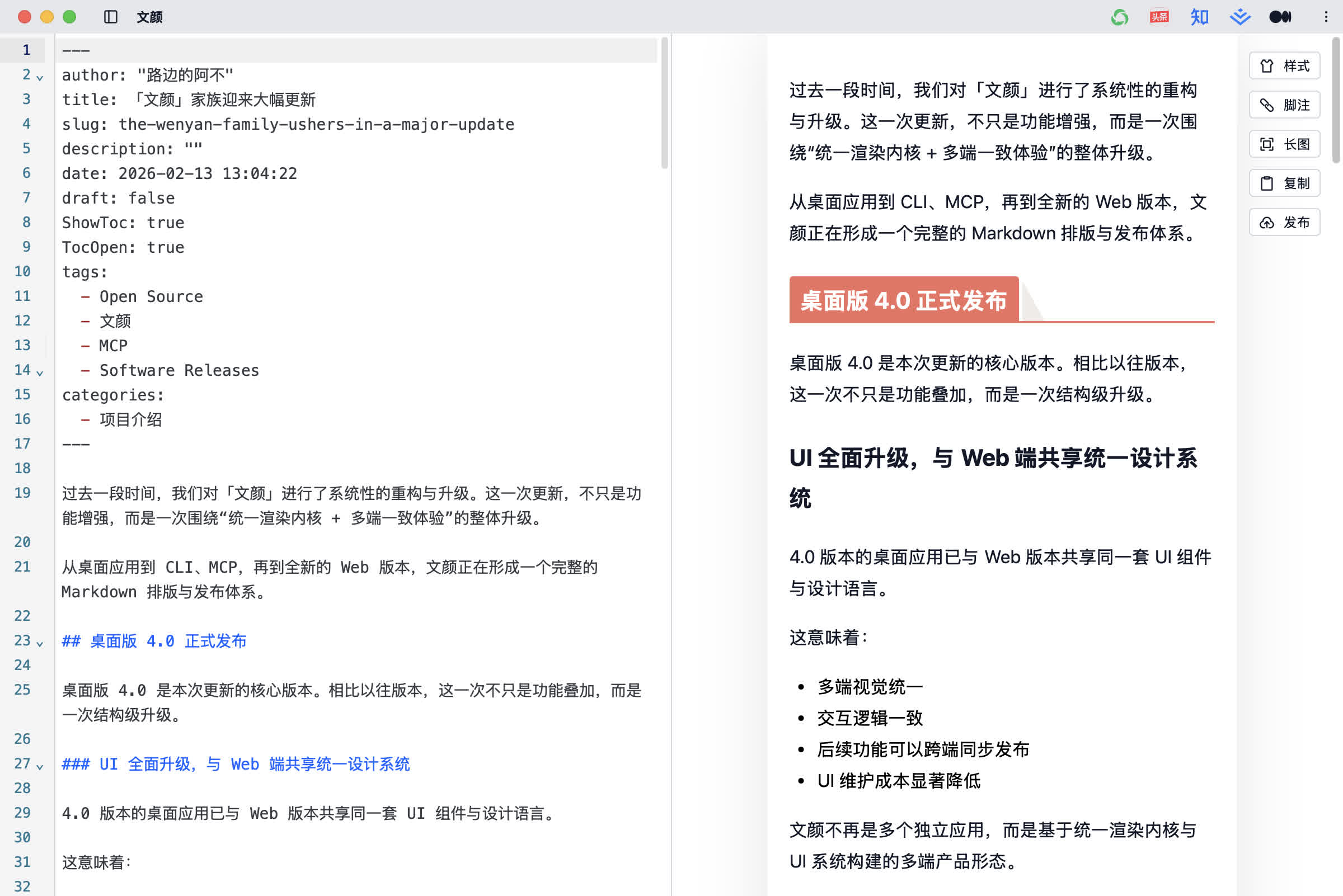 文颜正在从“排版工具”升级为“发布工具”。