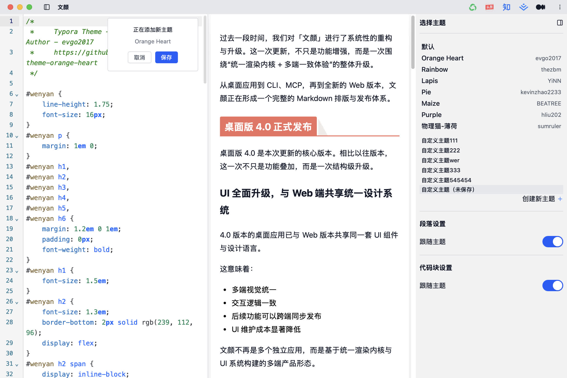 主题从“高级功能”变为“核心能力”,真正支持创作者构建自己的品牌化排版风格。未来会进一步构建围绕“文颜”的“主题市场”。